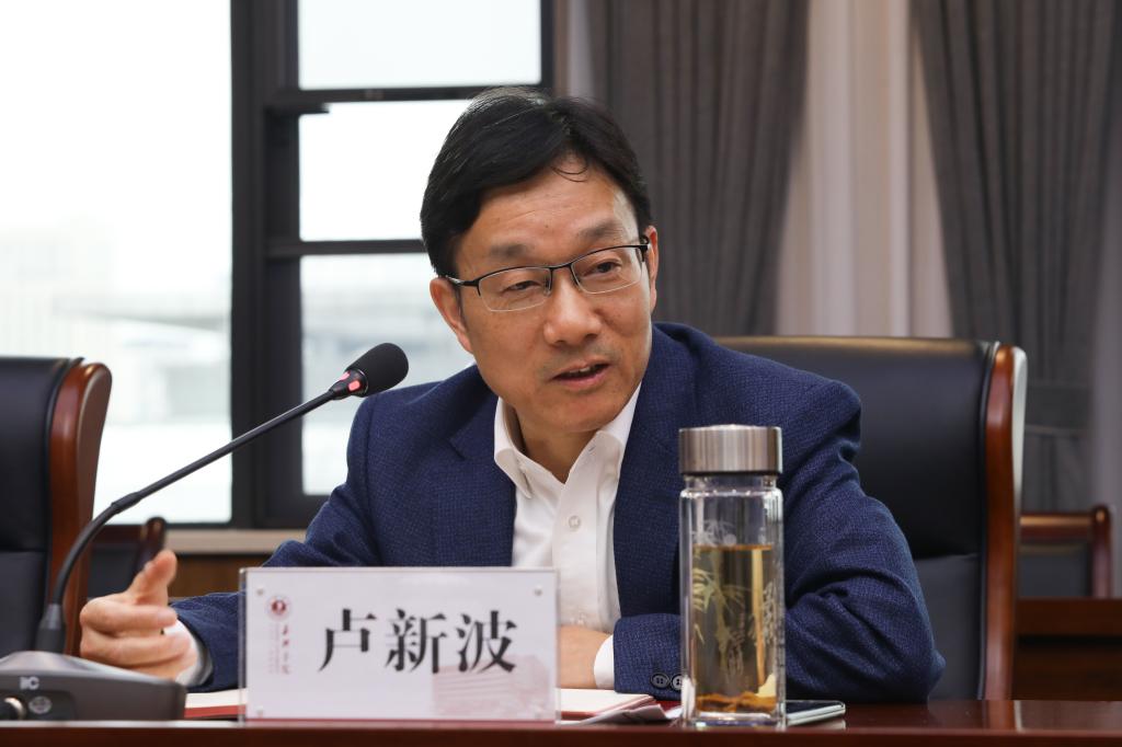 校党委书记卢新波为史晋川教授颁发聘书和佩戴校徽,代表学校感谢史晋川教授接受聘任,并简要介绍了学校基本情况。